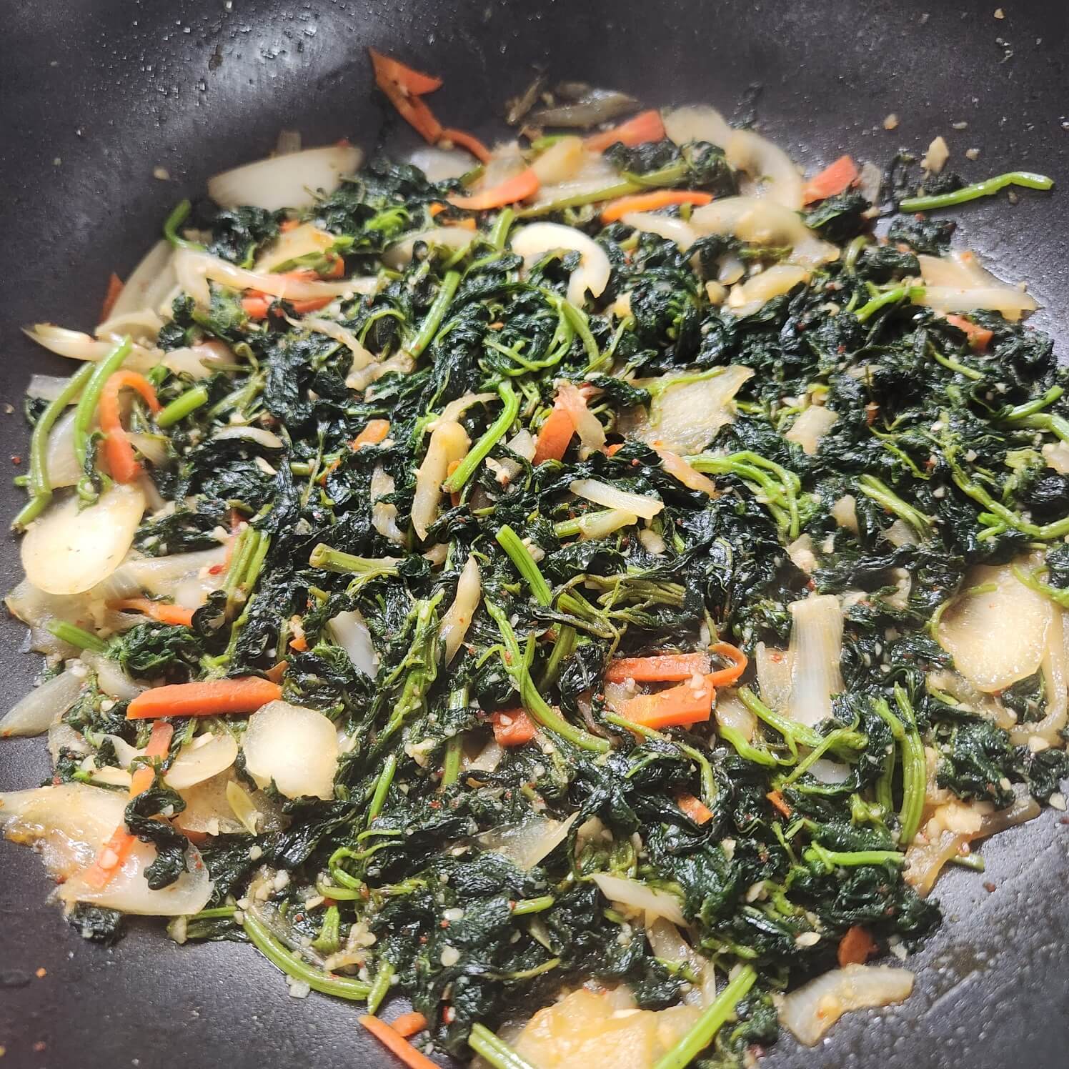 - 깻잎순 1팩 (200g), 양파 반 개(92g), 당근 1/7 쪽( 20g), 다진 마늘 1 숟가락 (16g)