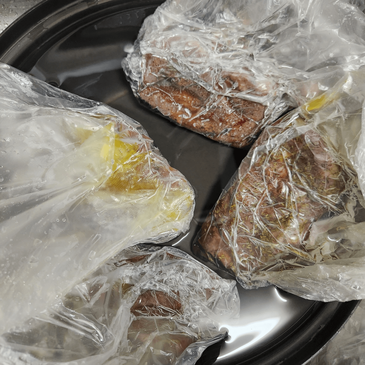 보통 집에 있는 전기밥솥의 보온온도로 수비드가 가능한 제품이 있습니다. 집마다 밥솥 상태는 다르겠지만 가능 한 집이 계시다면 쿠쿠 밥솥 보온온도를 최저 69도로 설정하시고, 2시간 보온으로 해주시면 기계 없이 하실 수 있습니다.